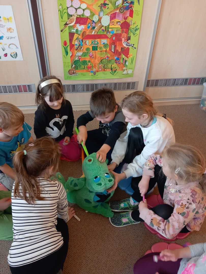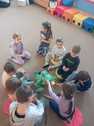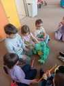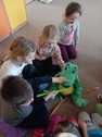 - Vlčata stříhají proužky barevného papíru na lidské tělo