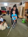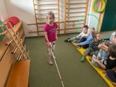 - Vlčata stříhají proužky barevného papíru na lidské tělo