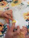 - Vlčata stříhají proužky barevného papíru na lidské tělo